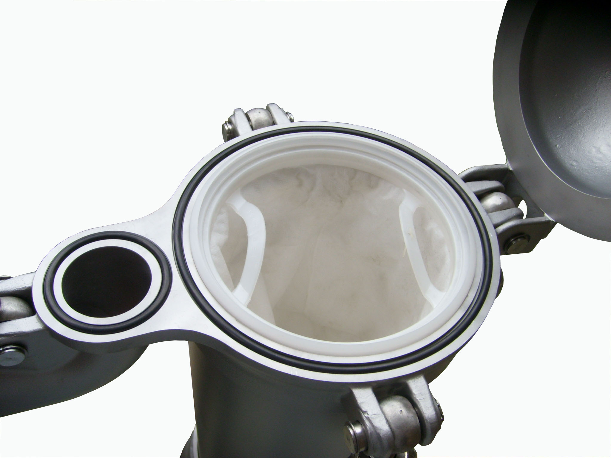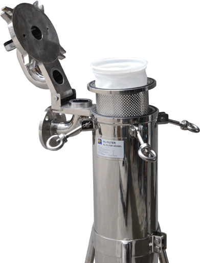 采用袋式過(guò)濾器最傳統(tǒng)的頂入低出過(guò)濾方式令需要過(guò)濾的液體從高處流向低位.過(guò)濾袋不受紊流的影響,提高濾袋的過(guò)濾效率和使用壽命.