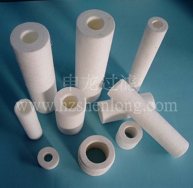 線繞濾芯具有良好過(guò)濾性能的紡織纖維紗線精密纏繞在多孔骨架上精制而成的。纏繞時(shí)通過(guò)控制紗線的纏繞松緊度和稀密度,可以制成不同精度的過(guò)濾芯?!?[