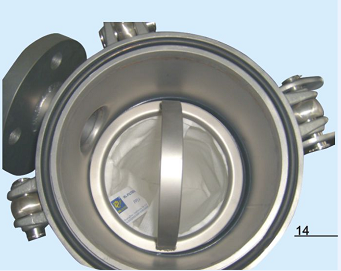 3、放置濾袋,使濾袋環(huán)口和金屬內(nèi)網(wǎng)領(lǐng)口吻合。注意:如果使用的是車縫濾袋,請將濾袋的車縫邊折疊后放入,可以提高車縫濾袋的過濾效果。