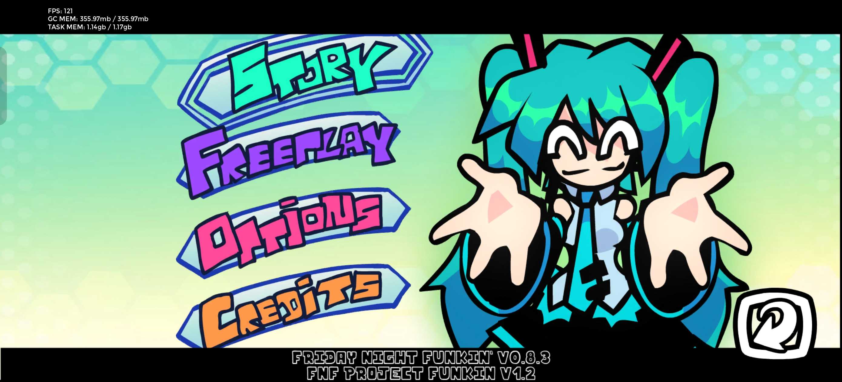 官方引擎0.8.3,0.8.0 想玩哪個(gè)版本看好裝 0.8.3版本模組包里有兩個(gè) HatsuneMiku-ProjectFunkin-V-Slice Sin Menu 的是有菜單背景和音樂(lè),圖在后面兩張 HatsuneMiku-ProjectFunkin-V-Slice 是沒(méi)有菜單背景和音樂(lè) 只能玩正常模式,有兩首曲子,