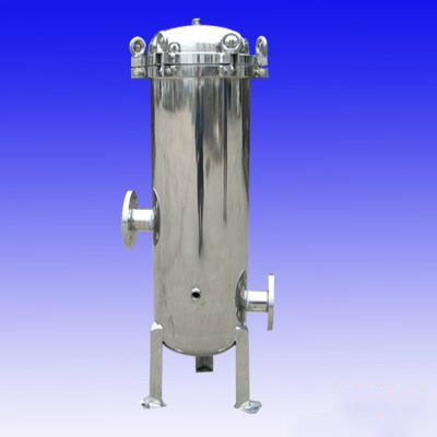 精密過濾器又稱保安過濾器,一般設(shè)置在壓力容器之前,以去除濁度1度以上的細(xì)小微粒,來滿足后續(xù)工序?qū)M(jìn)水的要求;有時也設(shè)置在整個水處理系統(tǒng)的末端,防止細(xì)小微進(jìn)入成品水?!?[