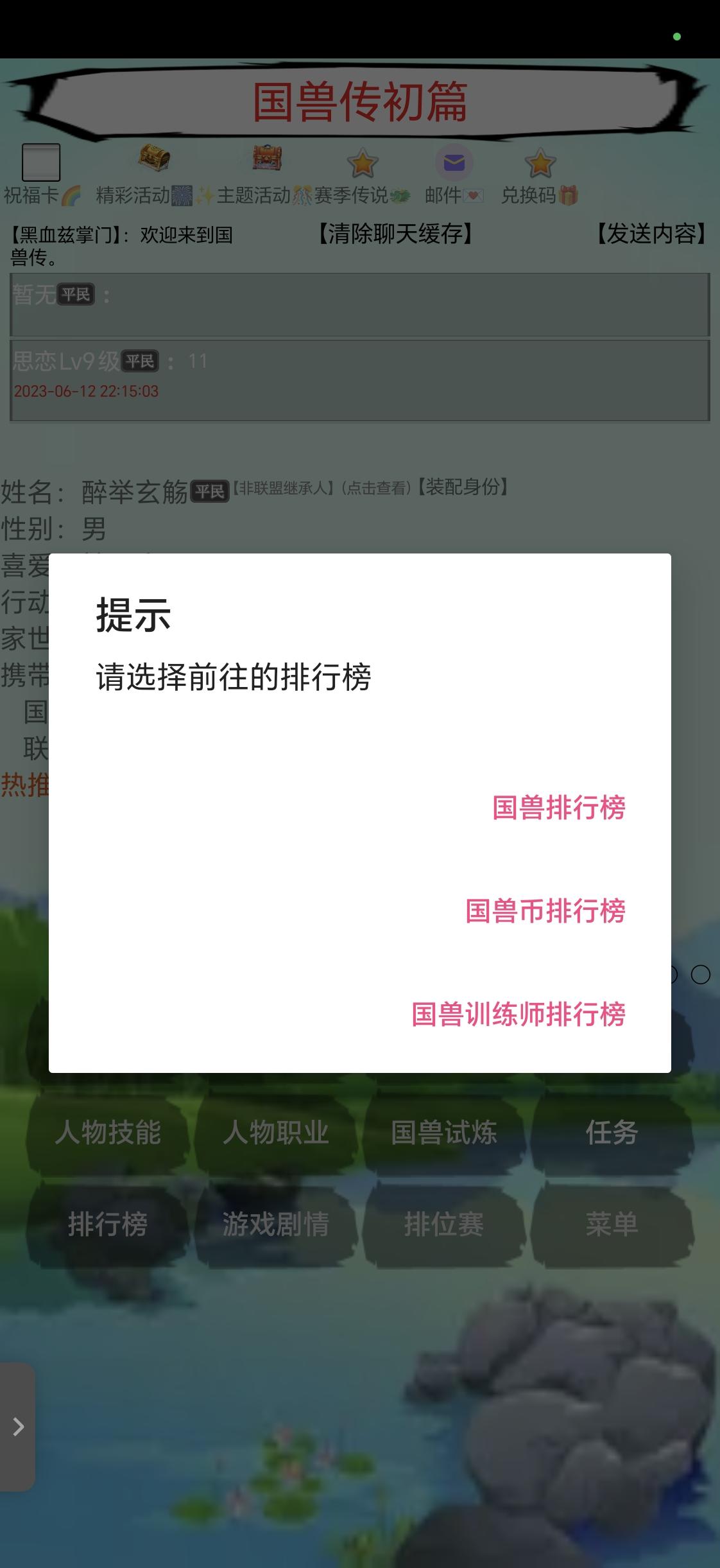 其實(shí)這個(gè)游戲目前還是一個(gè)文字刷刷刷游戲,但是群主很給力隔三差五就會(huì)更新,整個(gè)游戲沒有廣告就看著很舒服,目前最重目標(biāo)就是爭爭排行榜 ,刷刷高資質(zhì)國獸