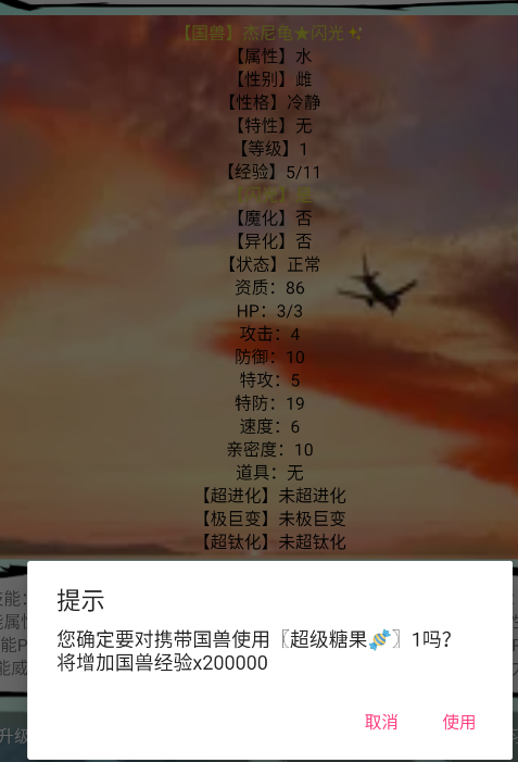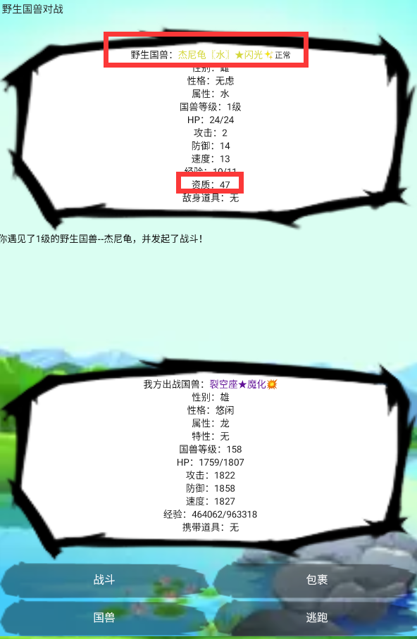 那么我就可以獲得神獸品質(zhì) (看運(yùn)氣? 算神獸初始資質(zhì)200+異化60+神獸80=340最高資質(zhì))的神獸了。如果沒有一天內(nèi)沒遇到,我們可以在第二天存檔繼續(xù)(保留了這天的訓(xùn)練師經(jīng)驗(yàn))。