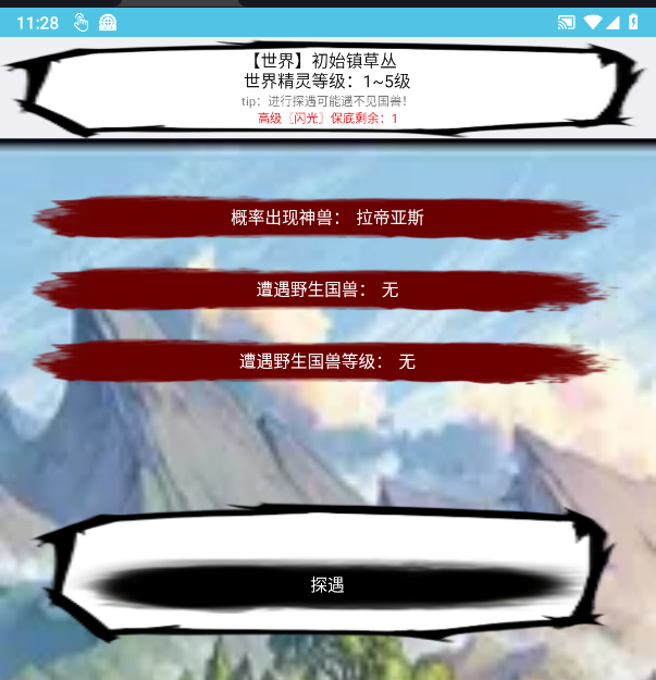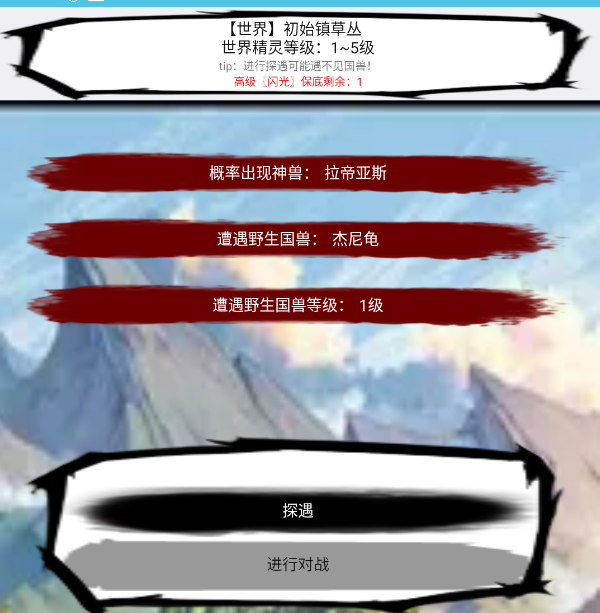 然后在界面最上方會(huì)顯示護(hù)符名稱和保底數(shù)量,我們進(jìn)行刷怪(在冒險(xiǎn)地圖中,怪物攻擊只我們的國(guó)獸只會(huì)掉1滴血),刷到"保底剩余:1"之后