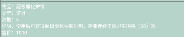 2.各級(jí)別魔化護(hù)符(低級(jí),高級(jí),超級(jí)都行)