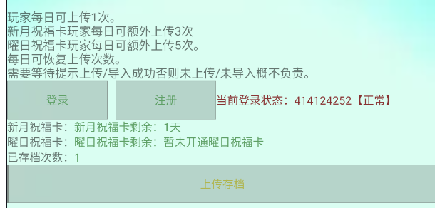 ★★★★★★★★★★進(jìn)行存檔,存檔白嫖向玩家目前每天只能存一次,謹(jǐn)慎使用,尤其是在有一定的累積之后,不要再輕易刪除存檔數(shù)據(jù),也不要卸載游戲。