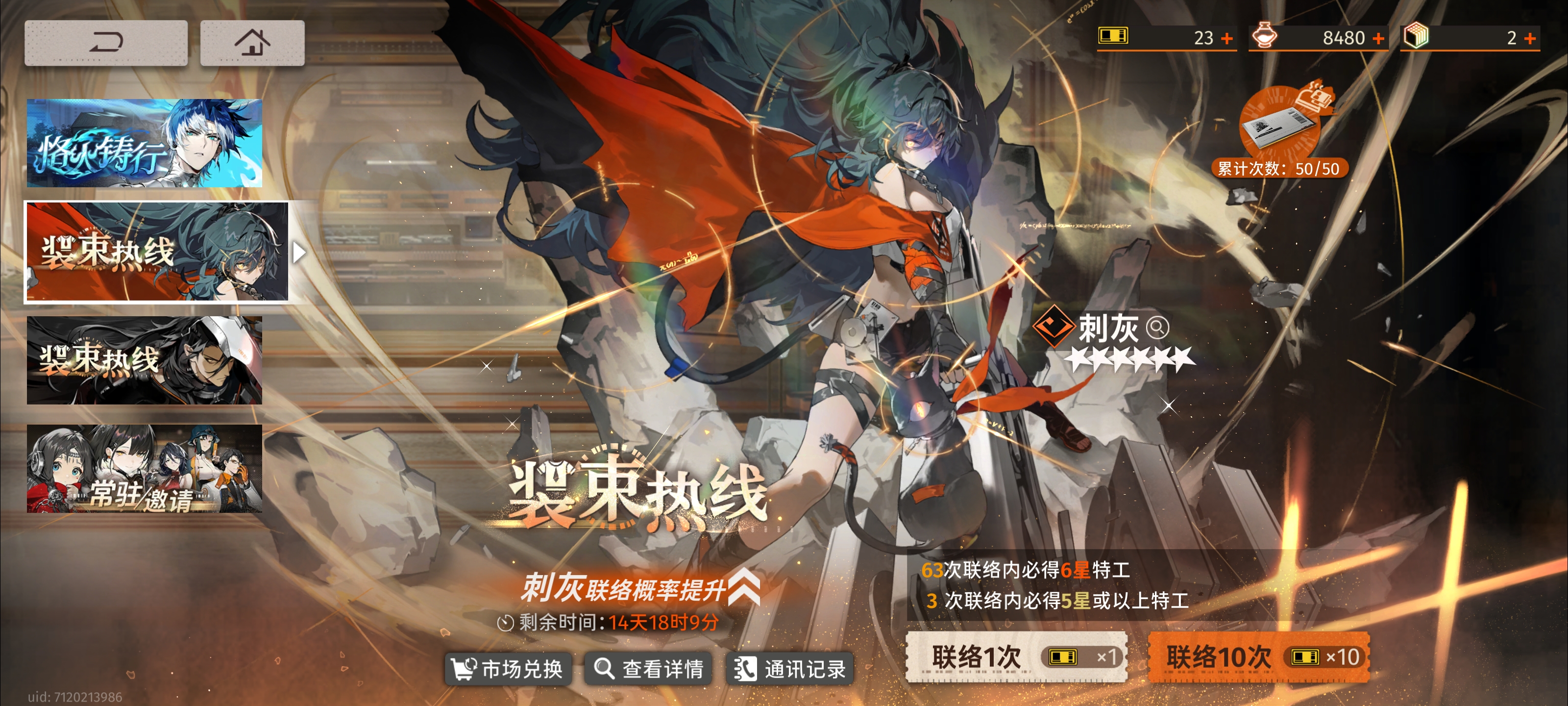 我是一路推到了第四章,領(lǐng)各種任務(wù)獎(jiǎng)勵(lì)后下的池子(可以給隊(duì)伍補(bǔ)一個(gè)輸出),我原本回坑的時(shí)候有60多張票,相塵只有1000多,我不太了解強(qiáng)度,隨便抽的刺灰,剛好是50抽出的,暴率比較正常