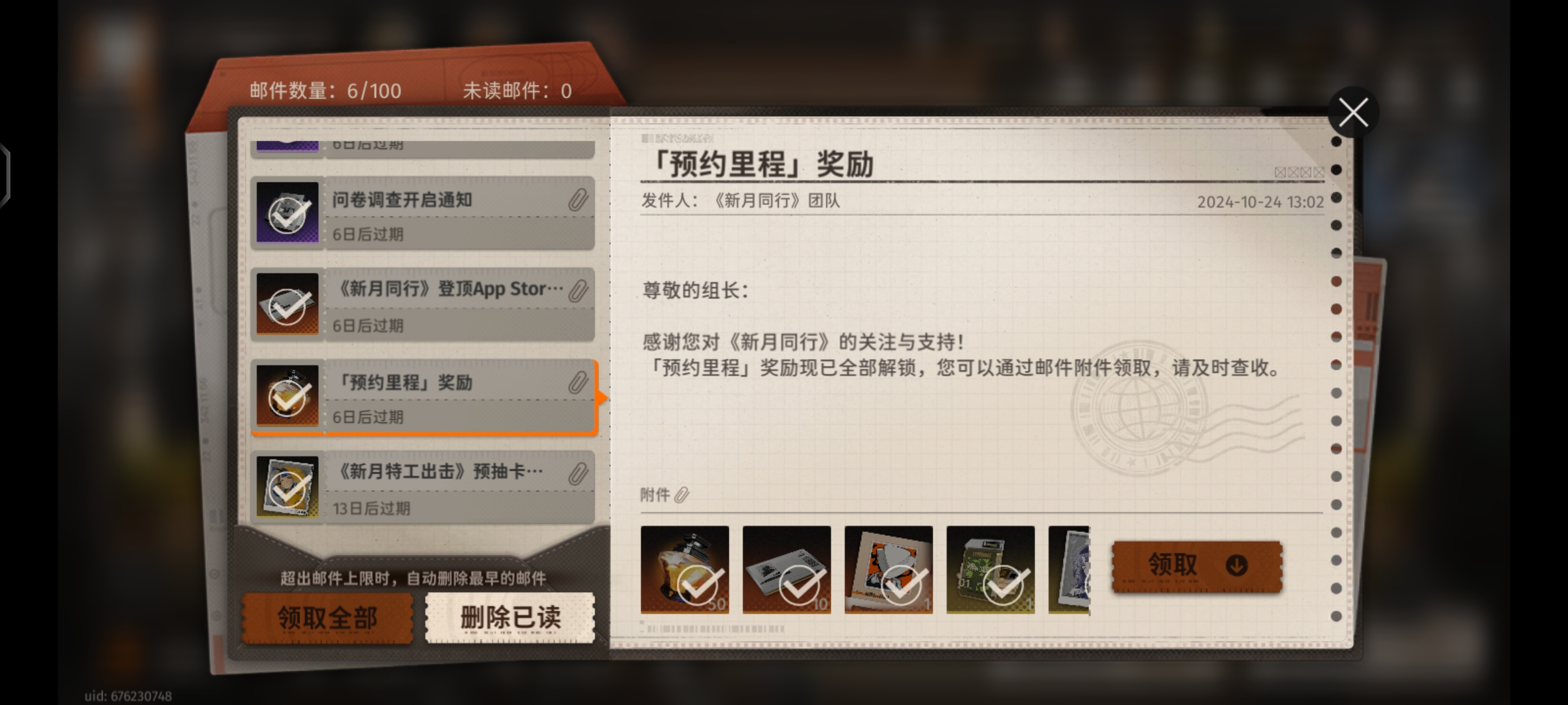 10抽:預約里程獎勵可得累計10抽(郵箱)