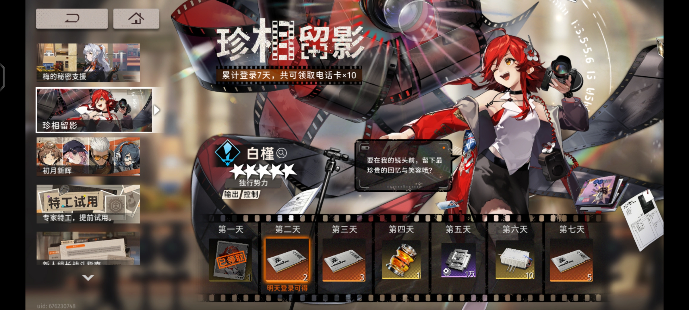 10抽:累計登錄7天【珍相留影】,可得累計10抽