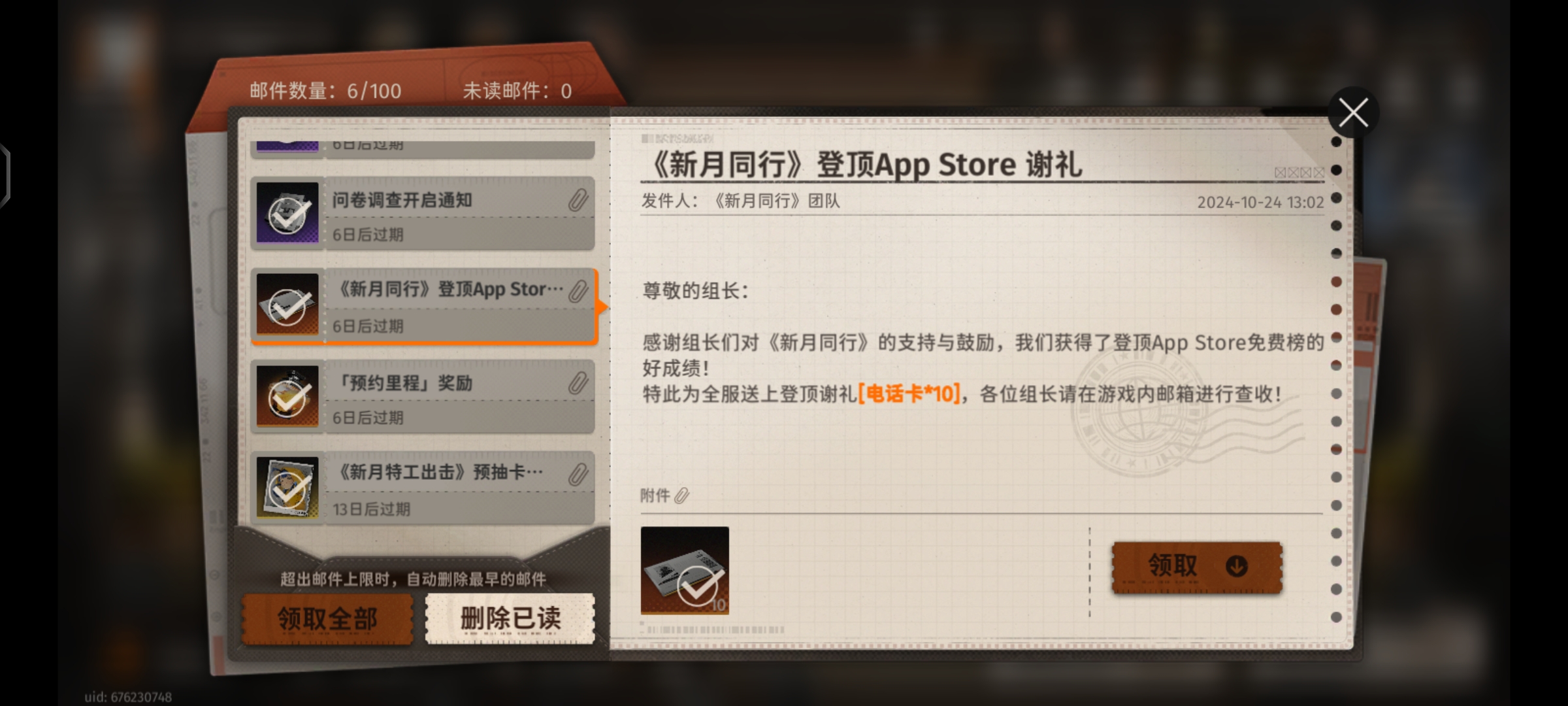 10抽:登頂App Store謝禮,累計10抽(郵箱)