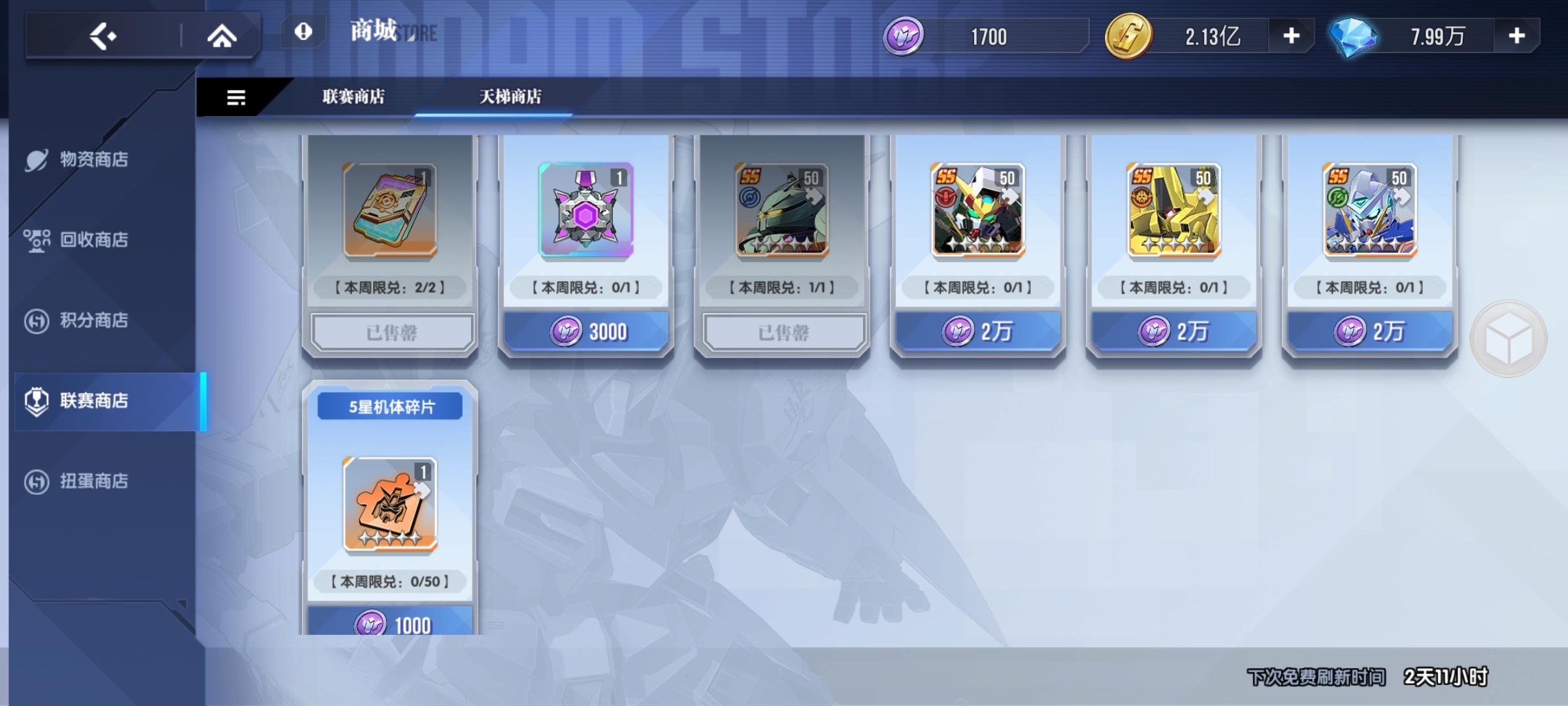 優(yōu)先權(quán)天使,每周必買想(拉滿需求17個(gè)),多的幣考慮主天使湊5個(gè)升彩,然后就是機(jī)師戰(zhàn)斗數(shù)據(jù),別的都不推薦。(新安洲有愛可以換,強(qiáng)度拉胯)