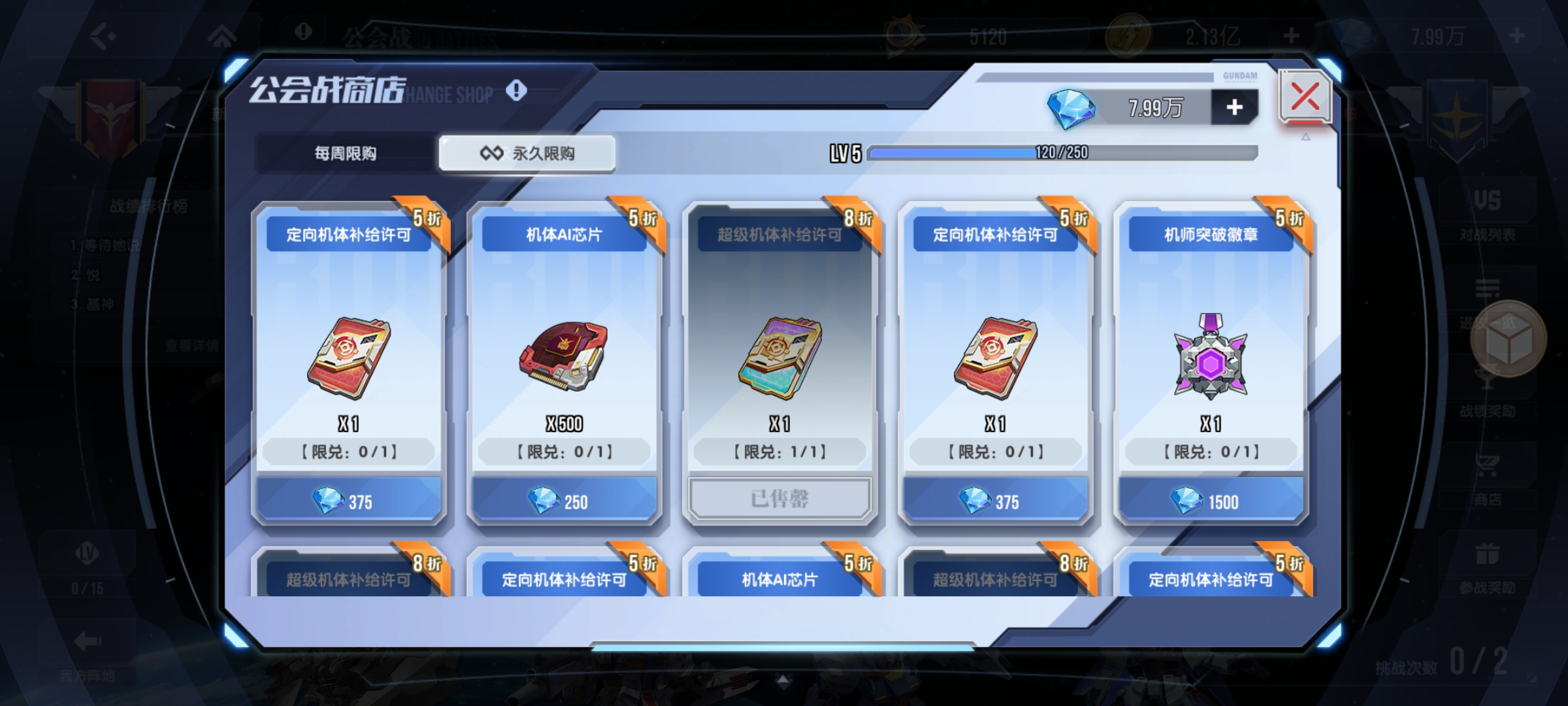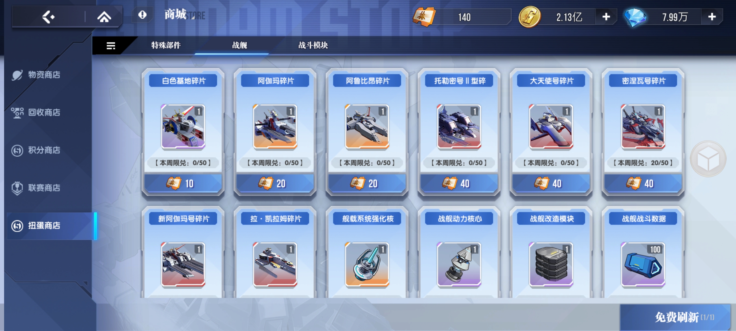 金幣可以購(gòu)買的東西:20w的遠(yuǎn)征指令(刷新遠(yuǎn)征必須,不然要30鉆),40w的4星機(jī)體碎片(必買),50w的各系碎片(選擇性購(gòu)買),12w和30w的演戲憑證(缺的時(shí)候買,保證身上有100張左右)。