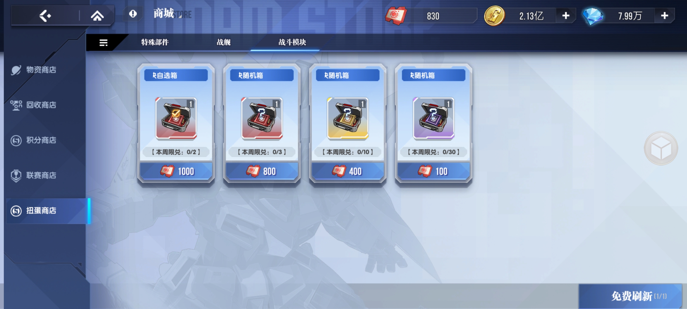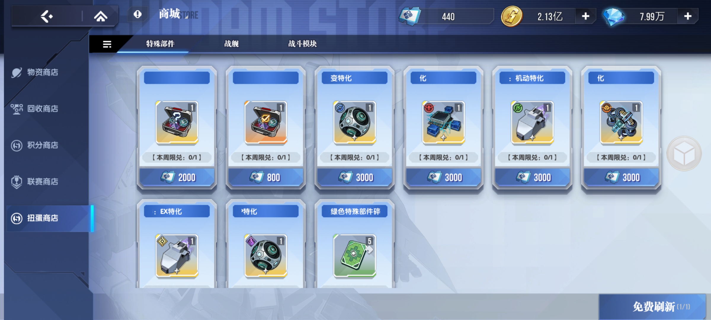 15.有些限時(shí)活動(dòng)也有商店,比如抽部件的活動(dòng),現(xiàn)在截不到圖,那個(gè)看你活動(dòng)積分有多少,優(yōu)先推薦限購(gòu)1個(gè)的金色部件箱子,然后橙色特殊部件碎片,目的是合紅色。