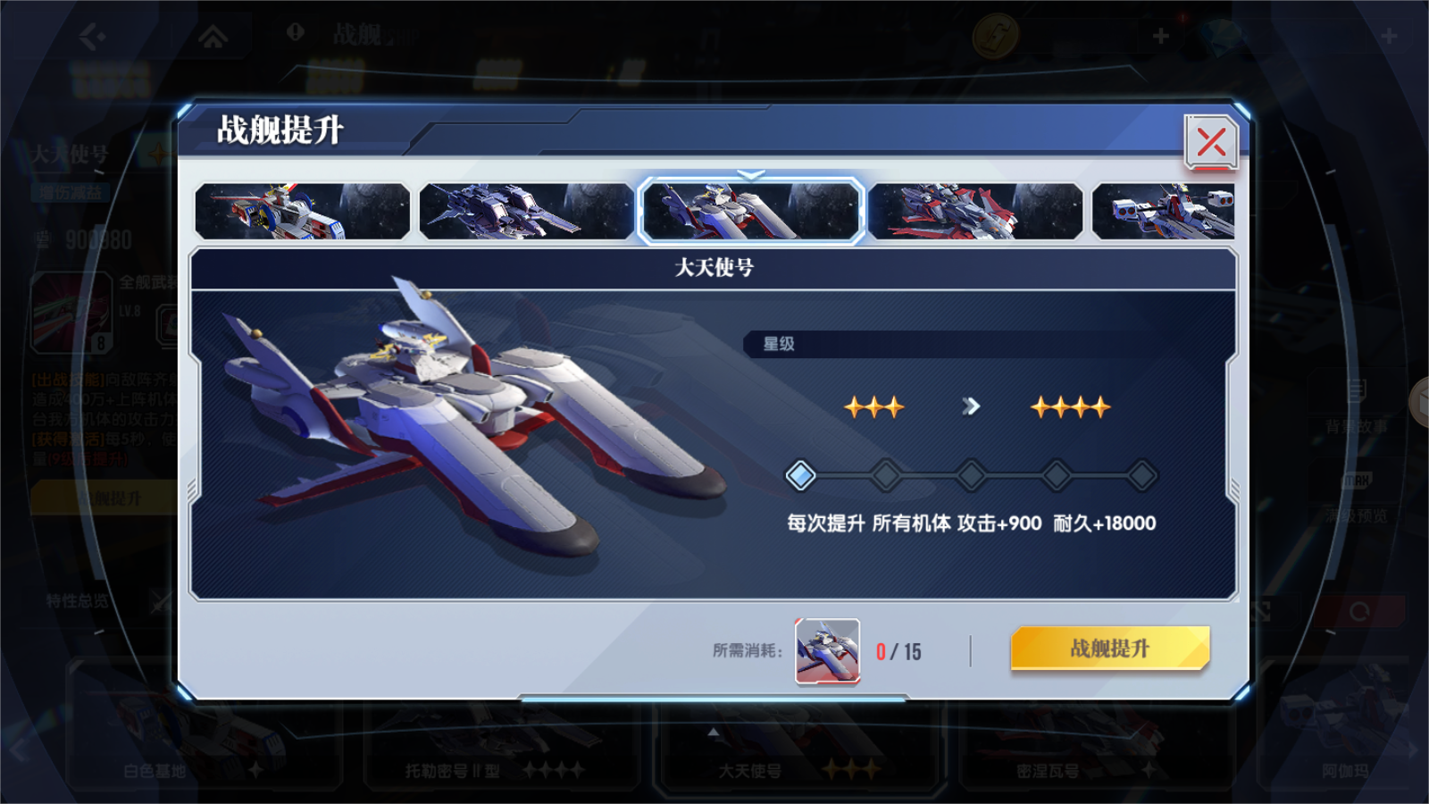 戰(zhàn)艦可以通過(guò)消耗同類(lèi)的戰(zhàn)艦碎片進(jìn)行升星,升星可以為全體機(jī)體帶來(lái)攻擊和耐久的提升,同時(shí)戰(zhàn)艦每次完成升星(每升星5次)即可提升技能等級(jí),提升技能的效果。