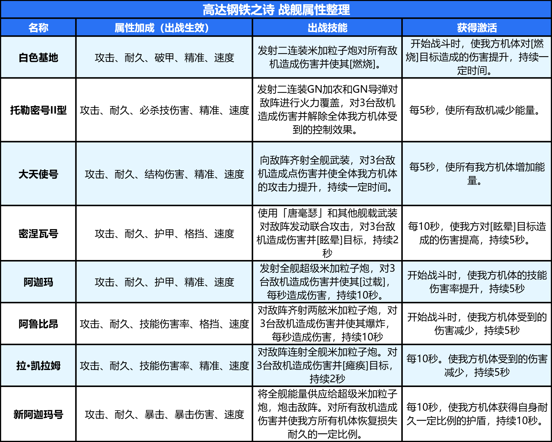 相信指揮官們一定想知道每一臺(tái)戰(zhàn)艦的屬性和技能信息,這邊特地為各位整理一份,供各位指揮官參考。