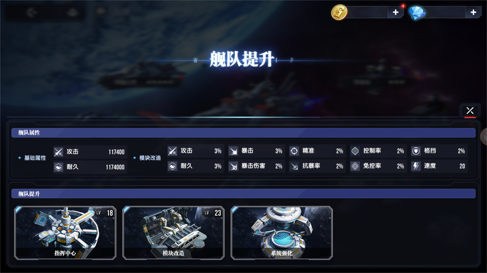 另外,戰(zhàn)艦界面右下角的【艦隊(duì)提升】功能可以提升指揮官所有機(jī)體的屬性,【指揮中心】、【模塊改造】、【系統(tǒng)強(qiáng)化】三個(gè)不同的提升選項(xiàng)分別需要【戰(zhàn)艦戰(zhàn)斗數(shù)據(jù)】、【戰(zhàn)艦動(dòng)核心】、【戰(zhàn)艦改造模塊】以及【艦載系統(tǒng)強(qiáng)化核心】來(lái)作為素材進(jìn)行強(qiáng)化。這些素材均可在【戰(zhàn)艦扭蛋機(jī)】中獲得(戰(zhàn)艦戰(zhàn)斗數(shù)據(jù)可以通過(guò)每日挑戰(zhàn)【艦隊(duì)資材】關(guān)卡和艦隊(duì)挑戰(zhàn)的關(guān)卡中獲?。?。