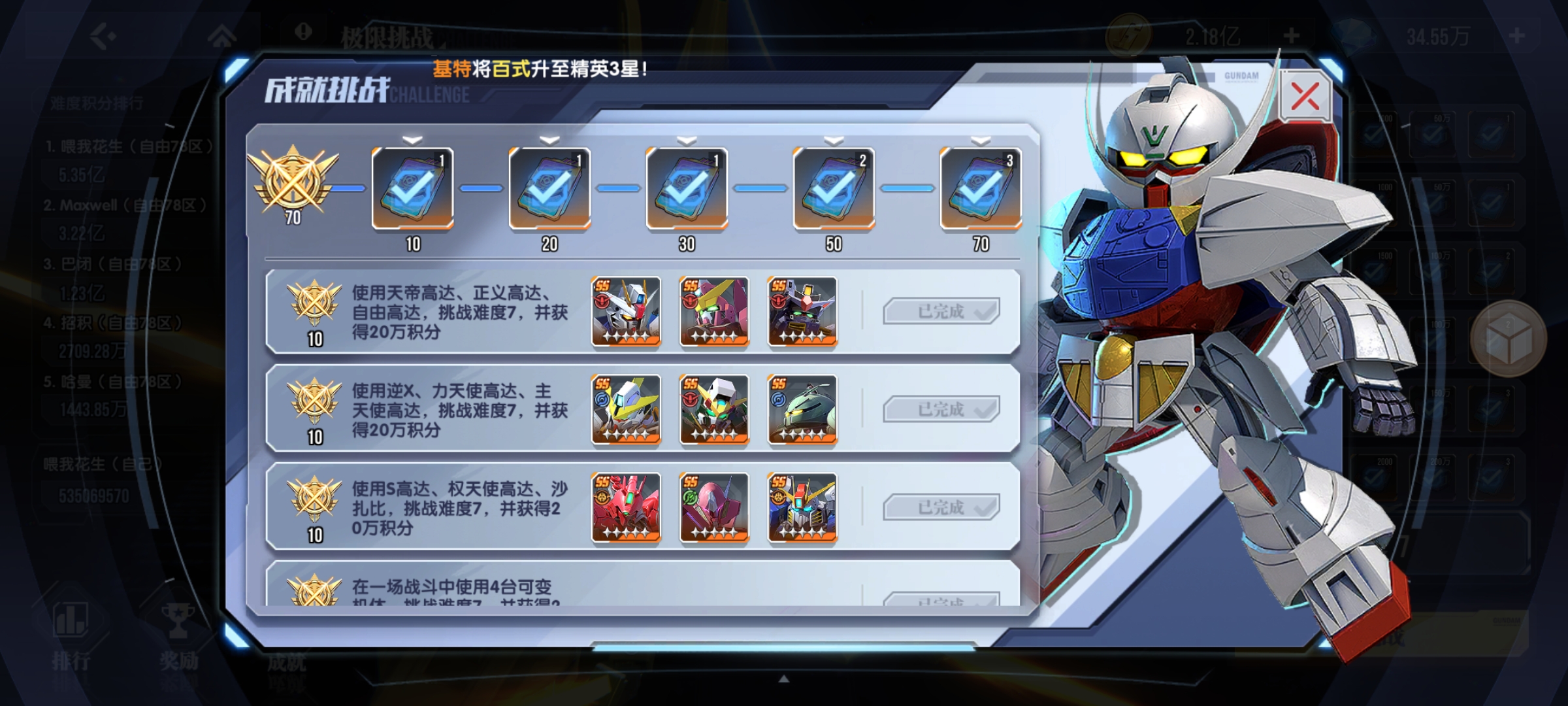 如果到這個(gè)階段還沒(méi)達(dá)到第七條要求的話,就上Z高達(dá)(覺(jué)醒)、加上隨便幾個(gè)沒(méi)上場(chǎng)過(guò)的機(jī)體,就可以完成了~
