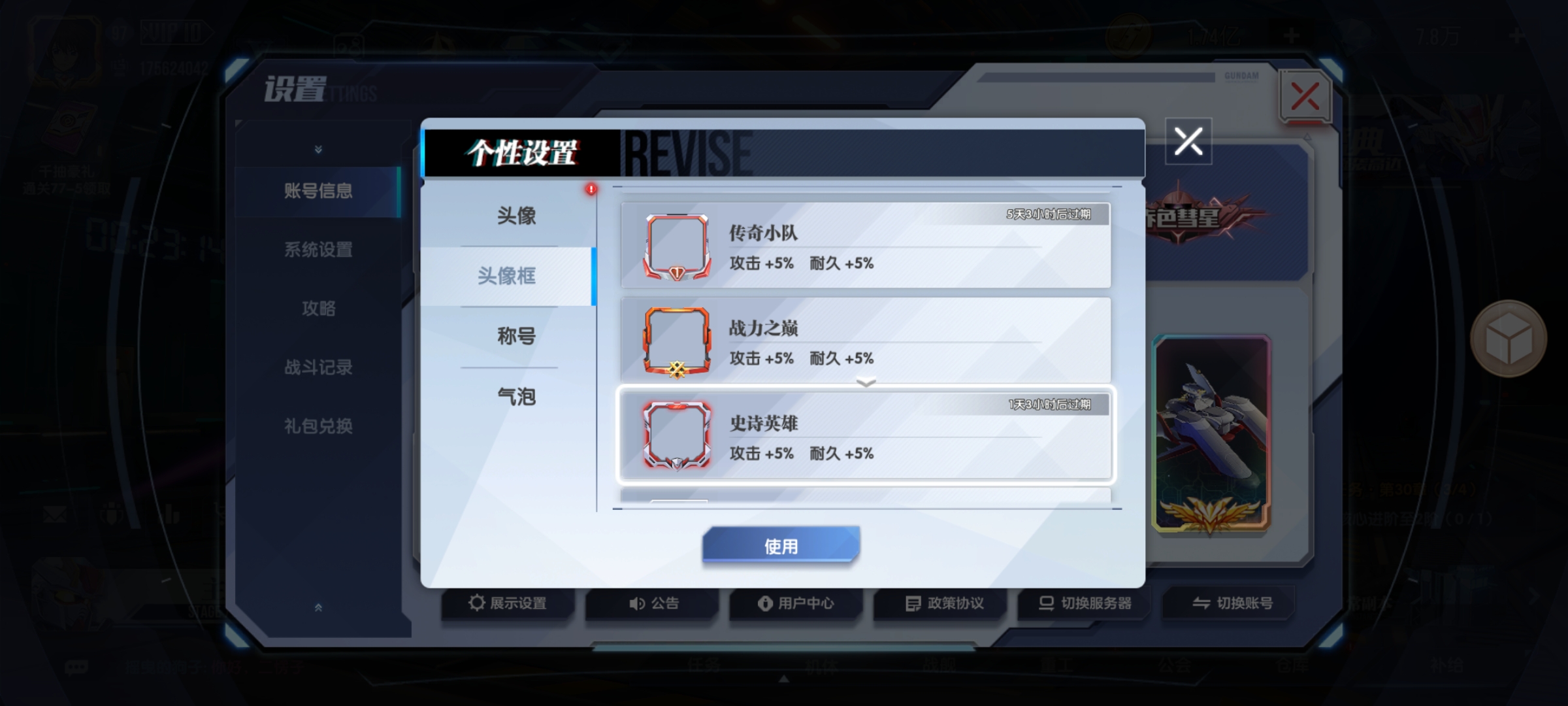 ? ? 頭像框加成的百分比屬性,也是很大一部分,不要小看這5%,越到后面加的戰(zhàn)力越多,能拿到競技好名次盡量拿到吧兄弟們~