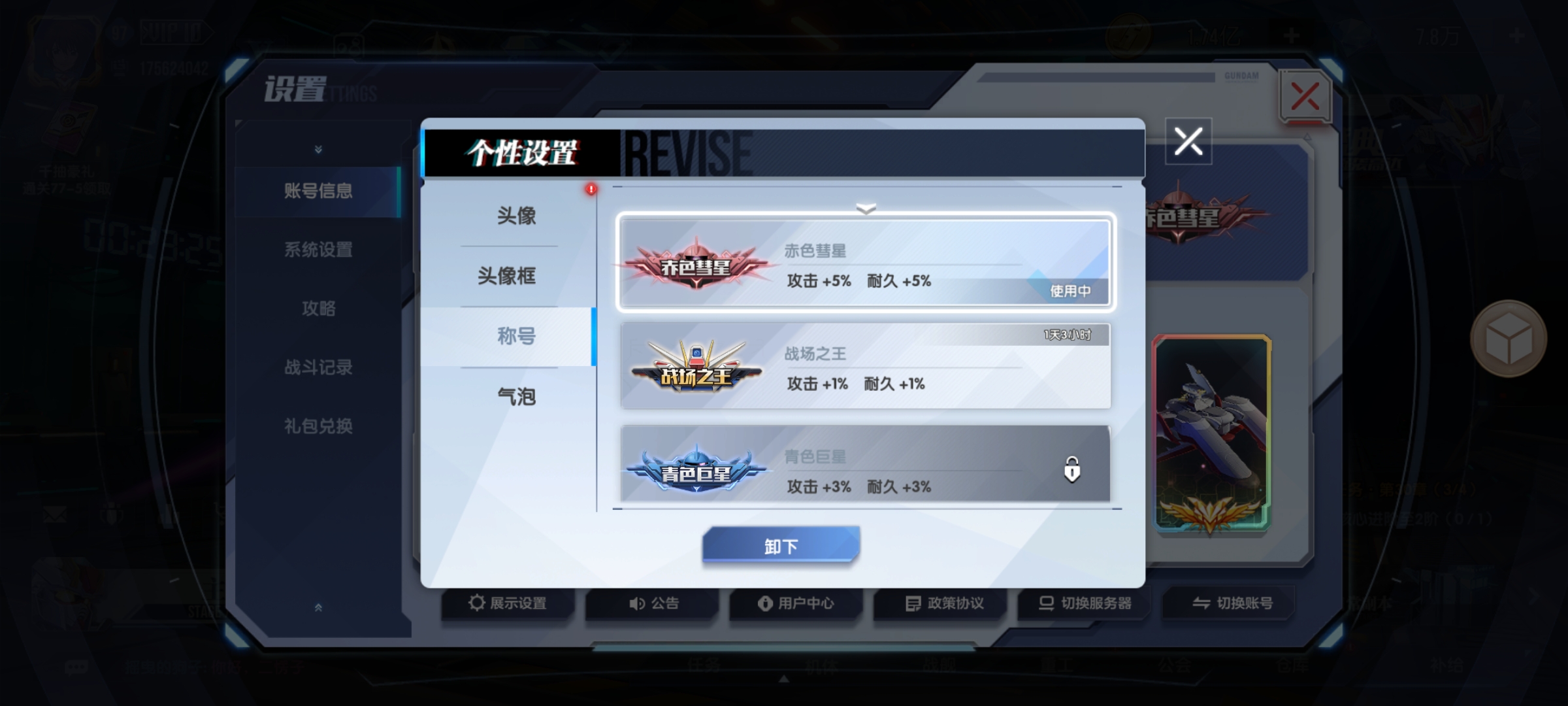2.有可能的話,競技里面打一下赤色彗星,這個最好跟區(qū)里大佬商量下,不要把守軍等級刷太高,只是借下稱號,實(shí)在打不過就試試別的稱號,有總比沒有強(qiáng)。說不定就差這一點(diǎn)就能刷下個等級的每日資源本了呢~