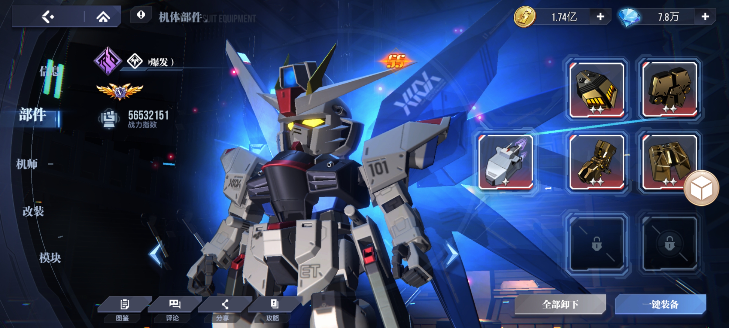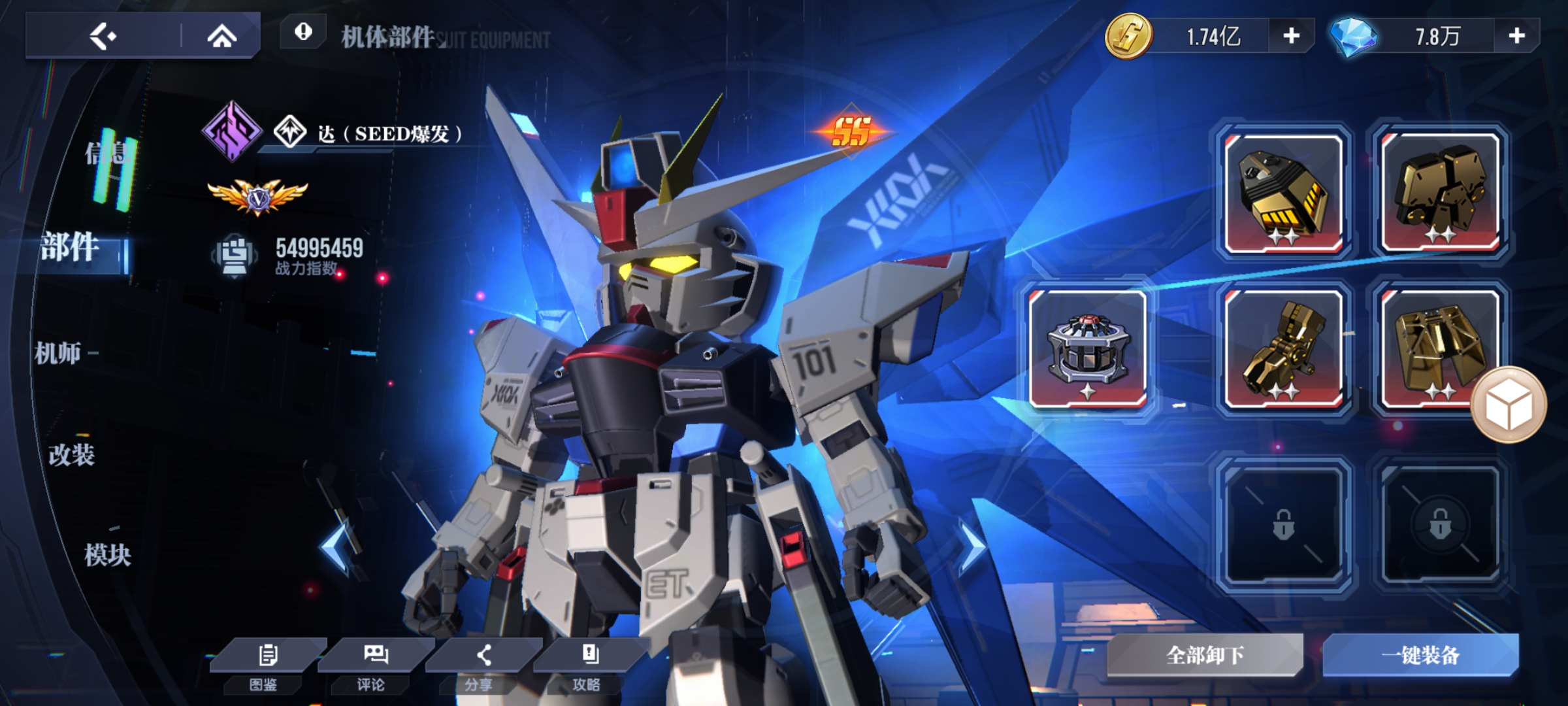 1.把最強(qiáng)五人的普通部件換成套,特殊部件反應(yīng)爐卸下去換成加耐久和攻擊高的特殊部件。