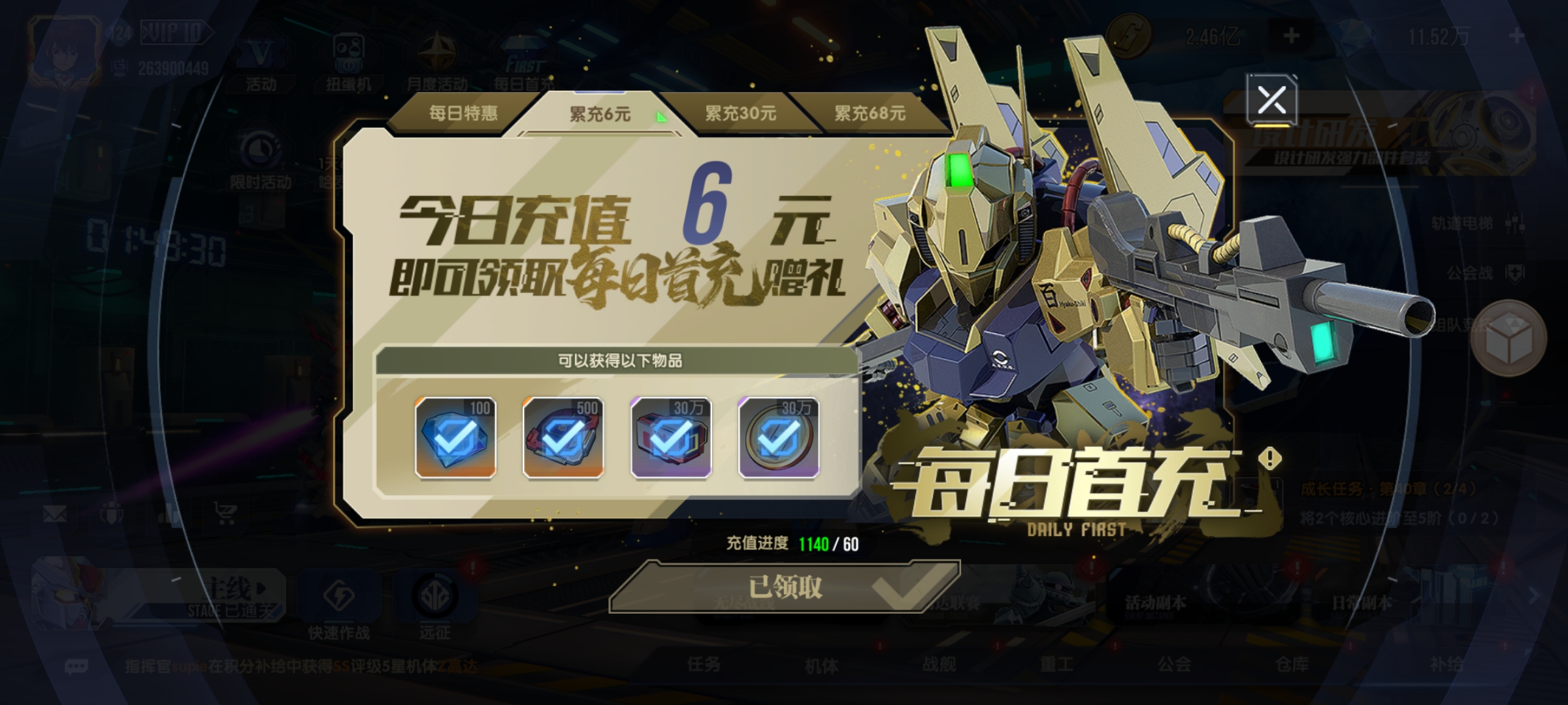 而且達到6元檔次還能領到一個累充6元的禮包,有500AI芯片、30w金幣、30w經(jīng)驗,也是這次更新以后新加的,等于說是又附送了一波培養(yǎng)資源。