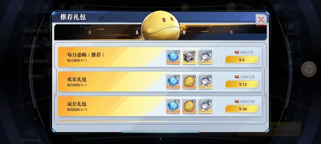 68元檔要達到的話,其實就是把上述30元檔次的兩種方式都算上就好了,這都是最具性價比的禮包,如果不夠就加上一部分12元禮包,推薦哈羅扭蛋、戰(zhàn)艦扭蛋這些。