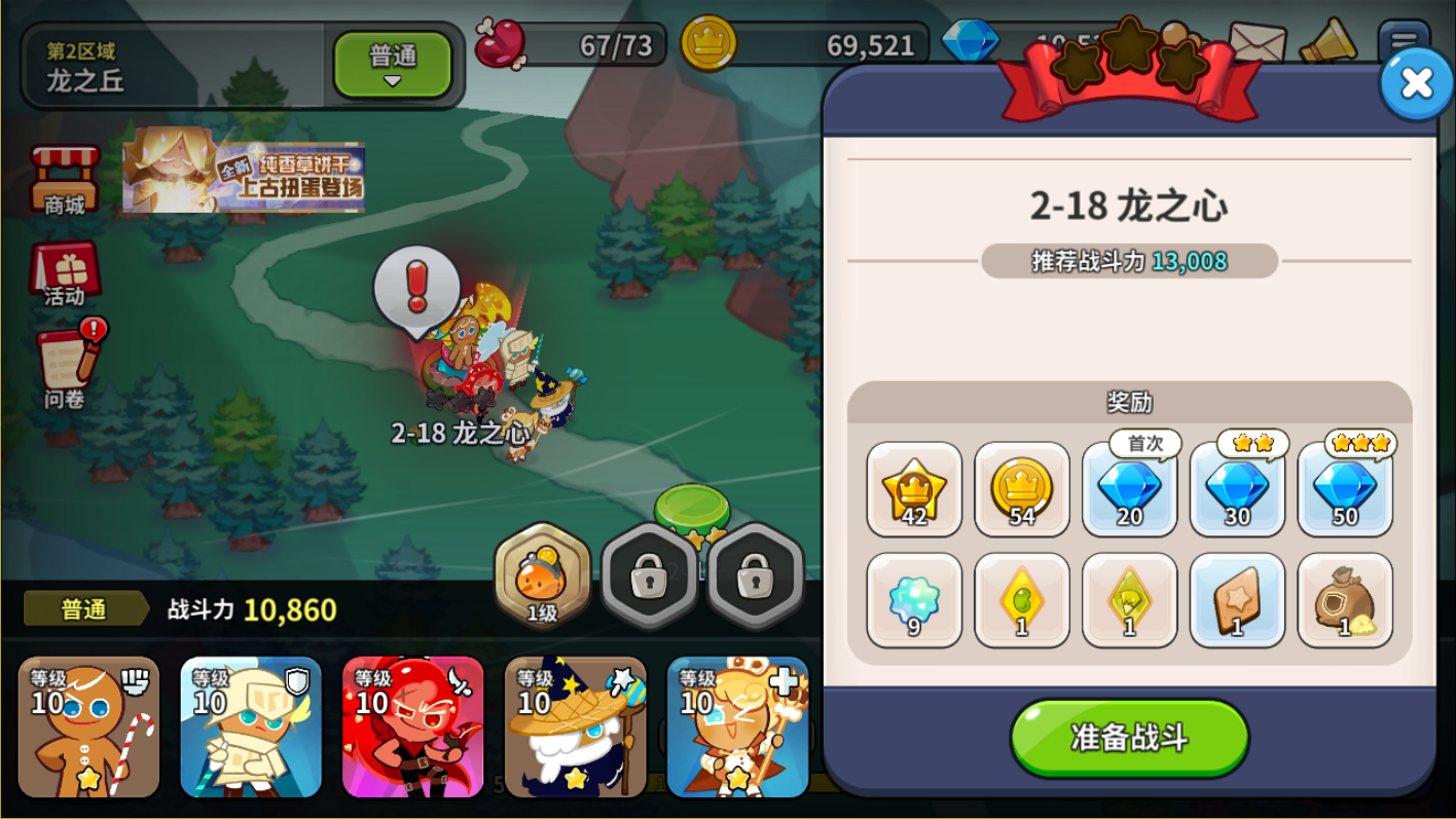 首日我們餅干城堡等級可以很輕松達(dá)到2級,可以領(lǐng)取500個水晶。