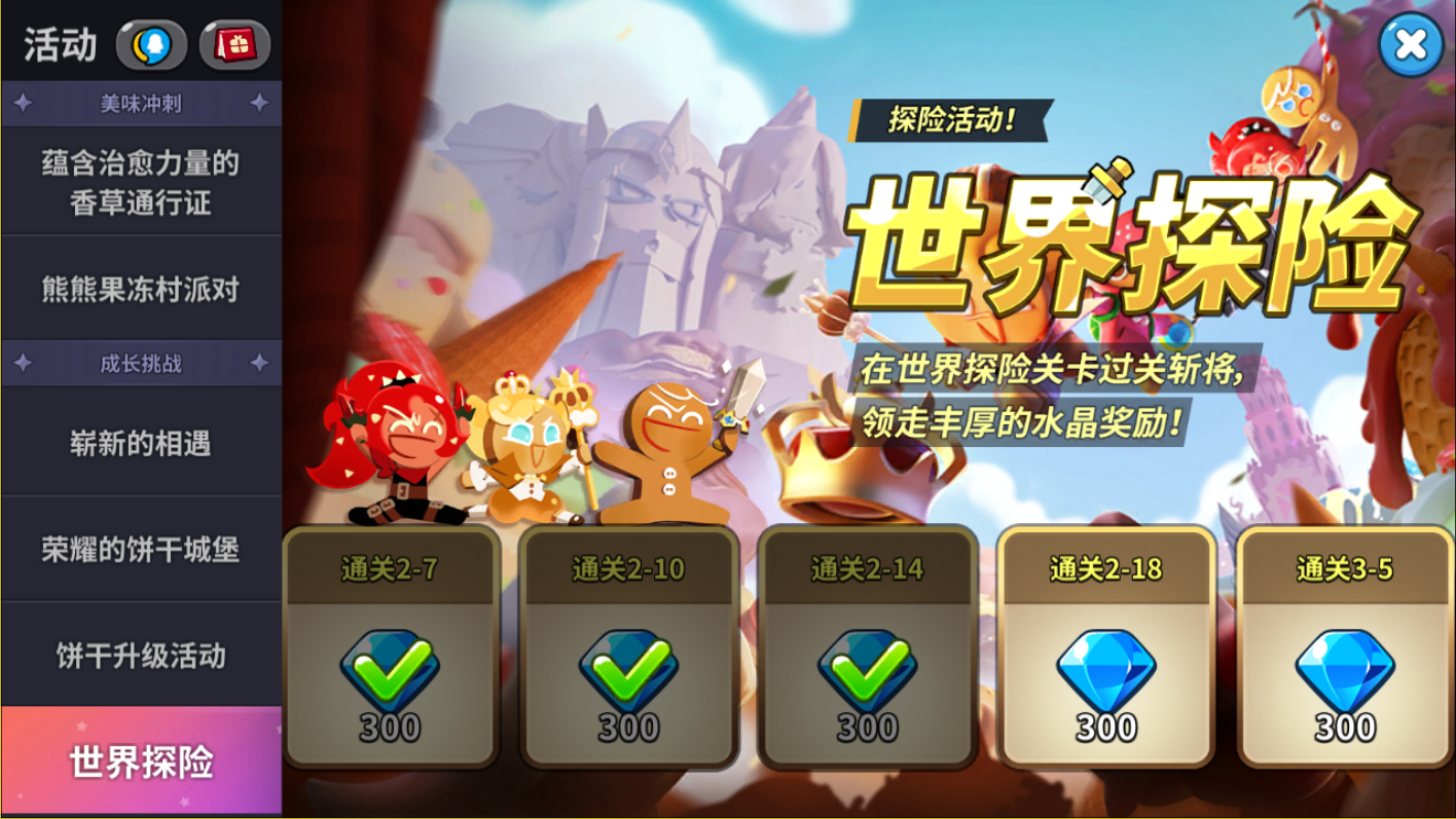 世界探險(xiǎn)每一關(guān)成功可以獲取大量水晶,同時(shí)每個區(qū)域星數(shù)達(dá)到一定數(shù)量都可以領(lǐng)取水晶獎勵,并且每通過固定關(guān)卡都可以在世界探險(xiǎn)活動中領(lǐng)取300水晶。