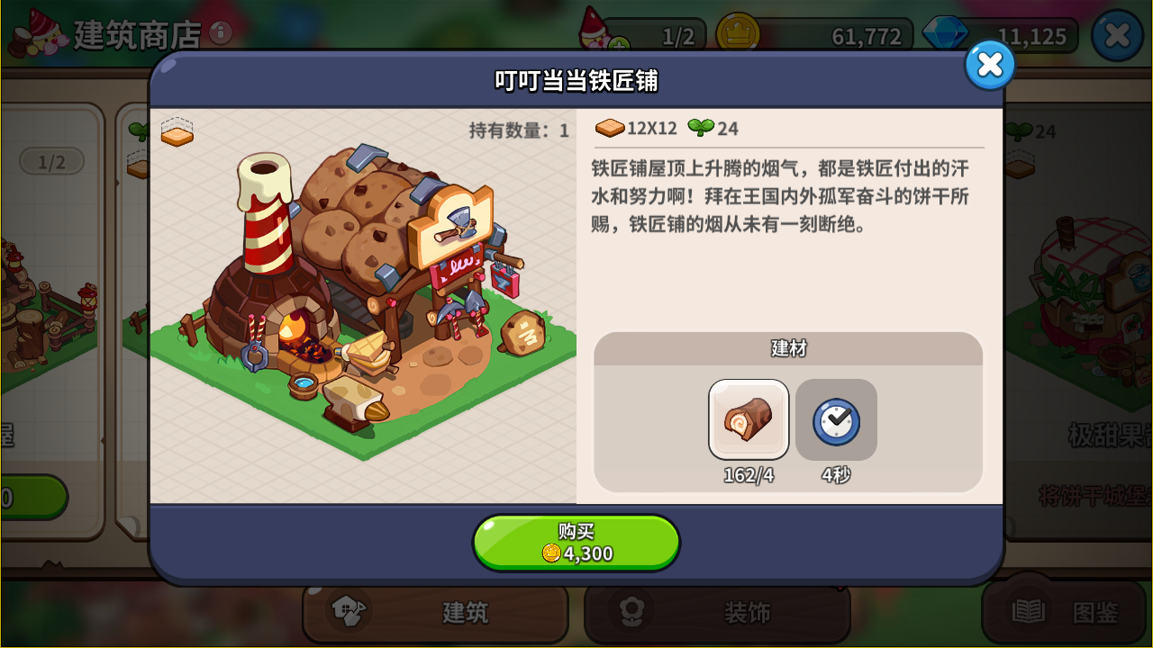 生產(chǎn)建筑方面的任務(wù)五花八樣,小仙貝建議大家優(yōu)先完成建設(shè)產(chǎn)生剛需物資的建筑,比如說(shuō)叮叮當(dāng)當(dāng)鐵匠鋪、木匠小屋和方糖采石場(chǎng)等等。