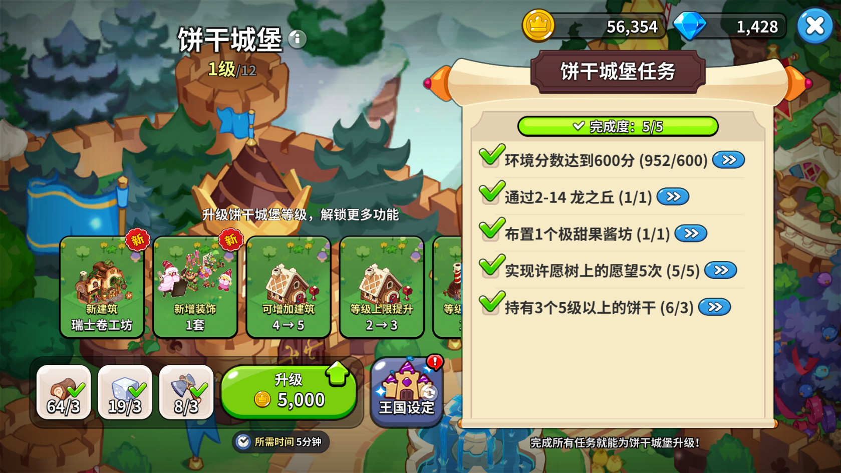 想要升級城堡,需要完成指定的任務以及達到指定的環(huán)境分數(shù)。