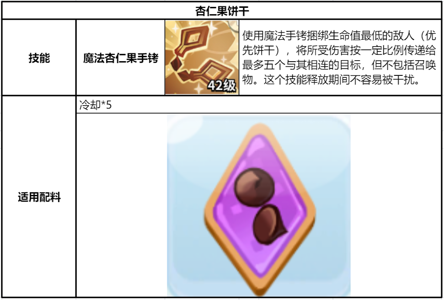 杏仁果餅干也是純輔助的支援型餅干,他的技能效果類似于提供一個(gè)傳導(dǎo)傷害的機(jī)制,從而大幅度提升隊(duì)友造成的實(shí)際傷害量。PVP和PVE玩法都很適用,但是打單體BOSS的時(shí)候這個(gè)技能就沒什么效果。