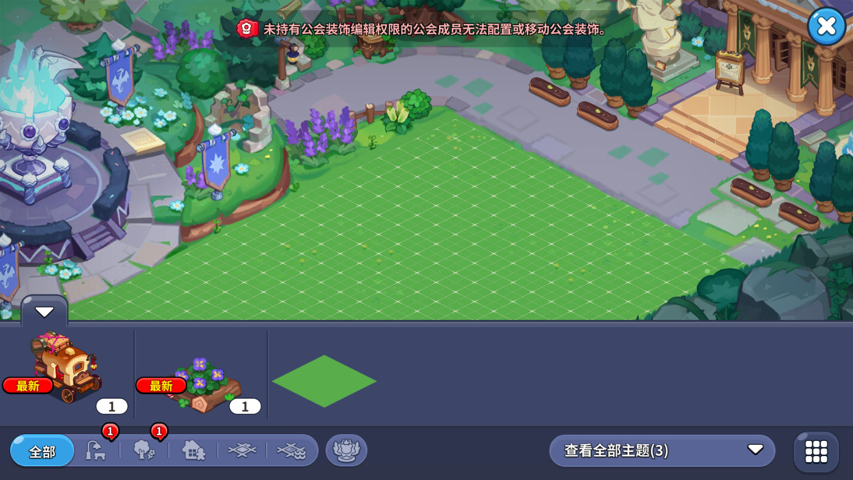 公會日常做完,有權(quán)限的公會管理可以編輯公會領(lǐng)土,普通成員可以花自己的金幣購買裝飾放在倉庫。