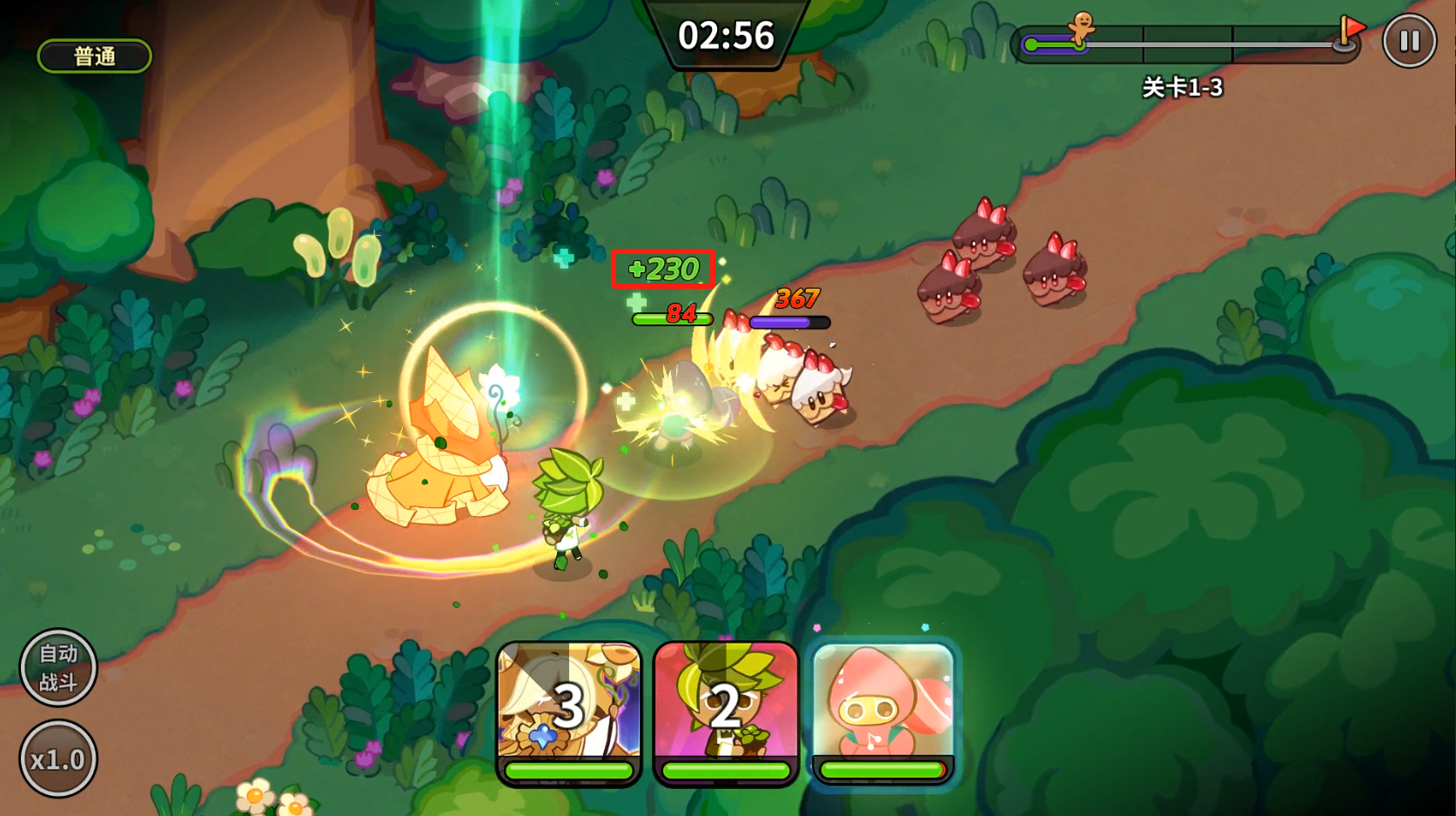 雖然三測(cè)時(shí)純香草餅干并沒有顯示恢復(fù)數(shù)值,但在同等條件下,純香草餅干光是普攻的治療量就遠(yuǎn)超其他餅干。