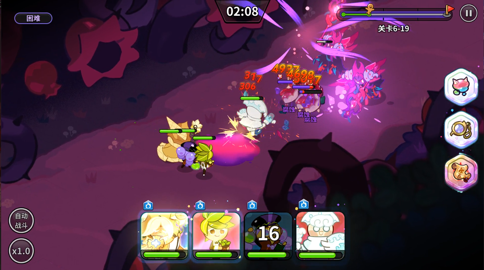 介于當(dāng)前只有一個(gè)超稀有爆破型餅干,如果想要用這類(lèi)餅干上陣的話,選擇也會(huì)比較明顯。但是,前期有一段時(shí)間,我們自身?yè)碛械某∮酗灨杀容^少,有一個(gè)輸出位可能需要用稀有餅干暫時(shí)替代。一般這種情況下,有些超稀有的爆破型餅干還是可以用的。