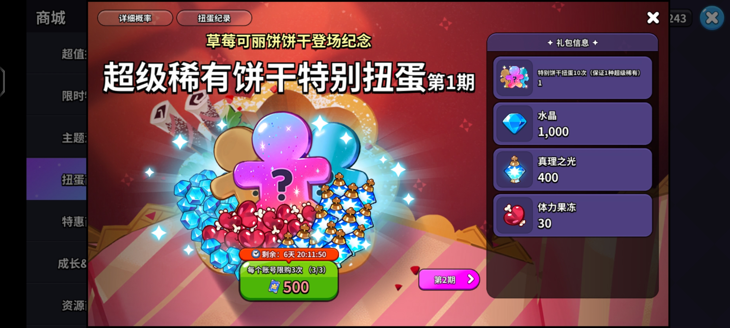 ⑤水晶規(guī)劃:前期優(yōu)先購買地標建筑物并且拉滿生產(chǎn)建筑的額外欄位,然后再拿去抽草莓可麗餅池子,注意一定別抽普池。