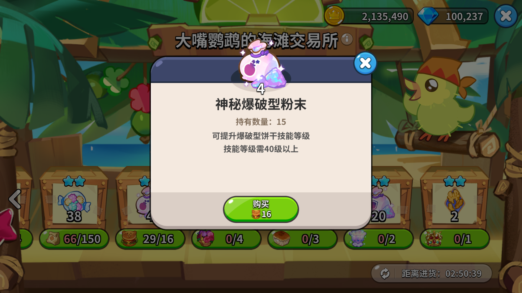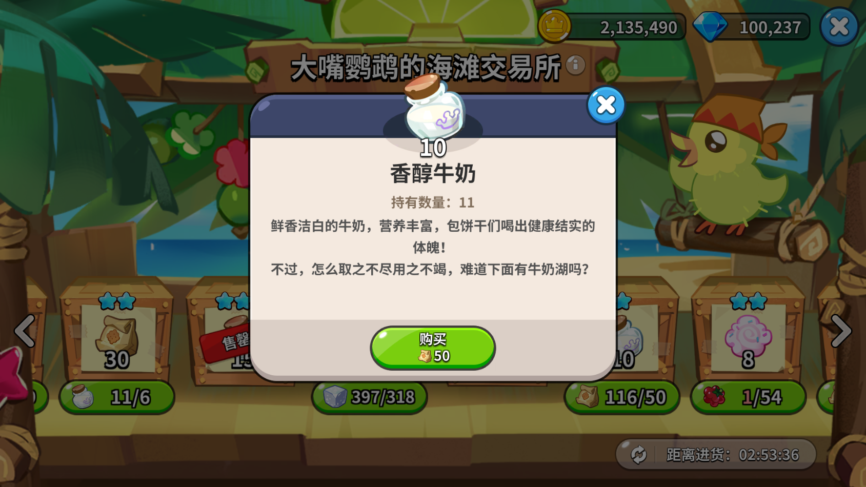 呀!餅干人:王國(guó)《沖呀!餅干人:王國(guó)》大嘴鸚鵡交易所物資置換推薦如下: