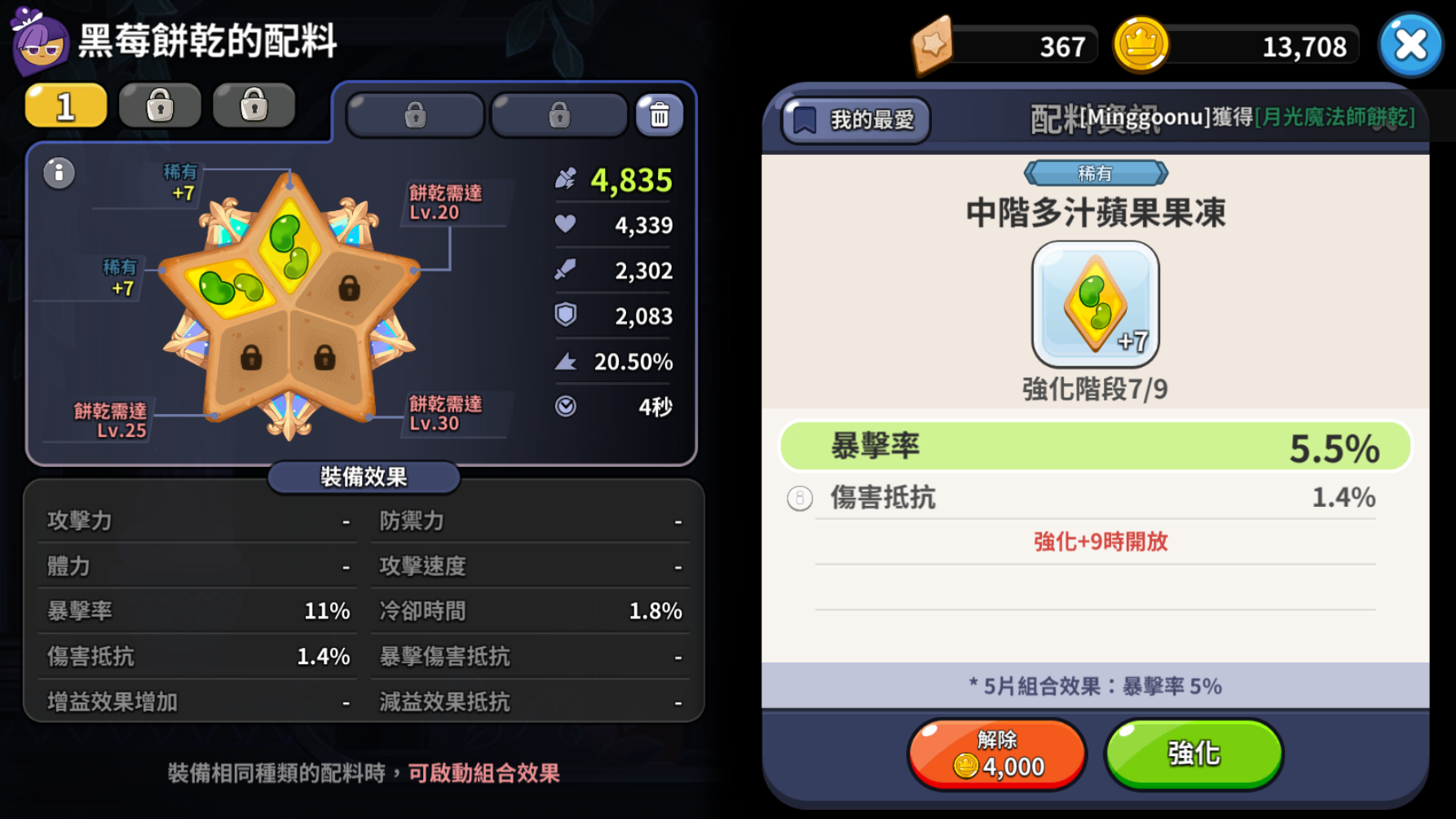 2、配料碎片可以強(qiáng)化配料等級(jí)的材料,等級(jí)越高強(qiáng)化效果越好。