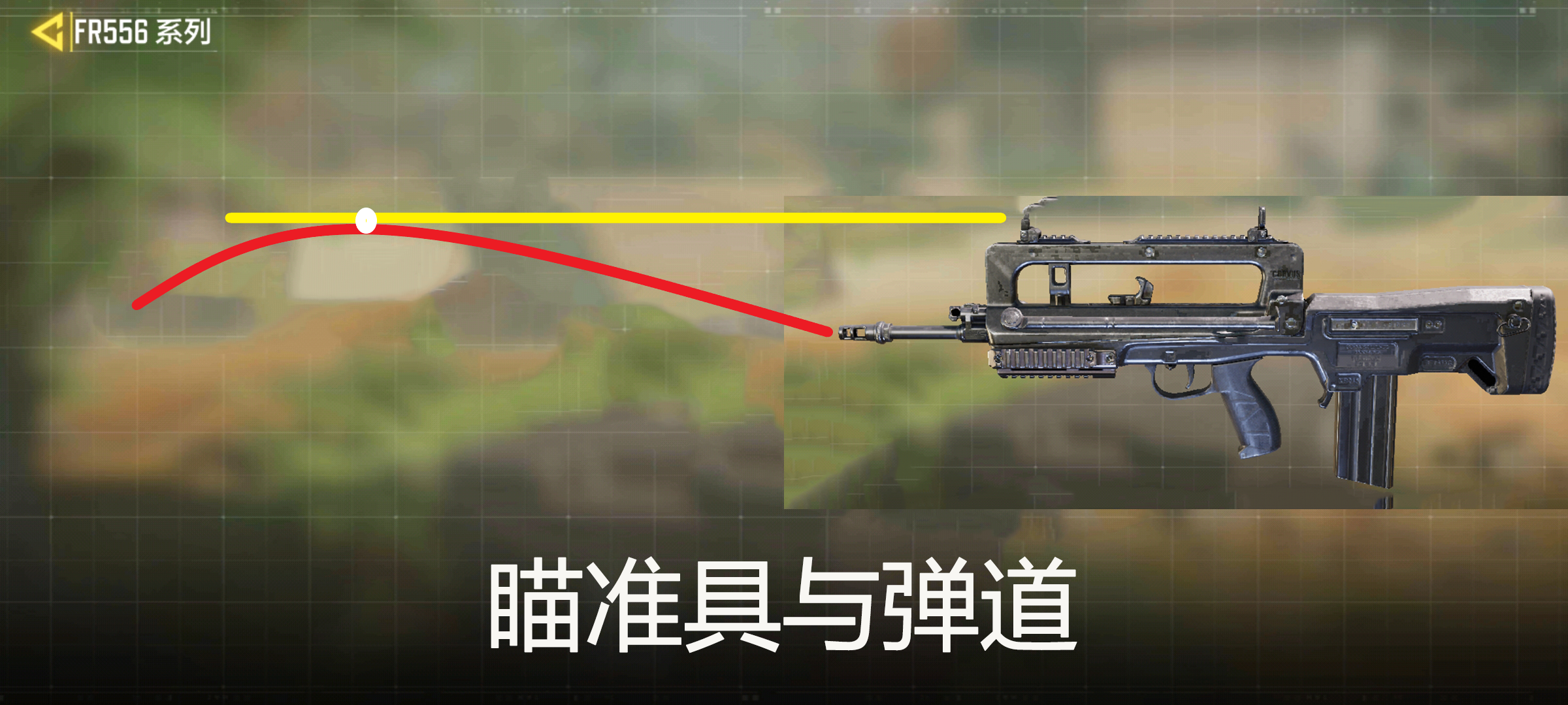 其實(shí)子彈會(huì)受到重力等多種因素的干擾,為了提高命中率,剛出槍口的子彈會(huì)略微朝上移動(dòng),整體彈道呈拋物線進(jìn)行延展,這條線與瞄準(zhǔn)具的交叉點(diǎn)(白點(diǎn))才能準(zhǔn)確擊中目標(biāo)(具體可參考上圖),現(xiàn)實(shí)中常常要進(jìn)行多次校準(zhǔn)來保證命中率。使命召喚手游中的FR556在瞄準(zhǔn)射擊時(shí)就會(huì)給人一種槍管較低的感覺,建議大家多多練習(xí)適應(yīng),或是安裝紅點(diǎn)瞄準(zhǔn)鏡來改變射擊視野。